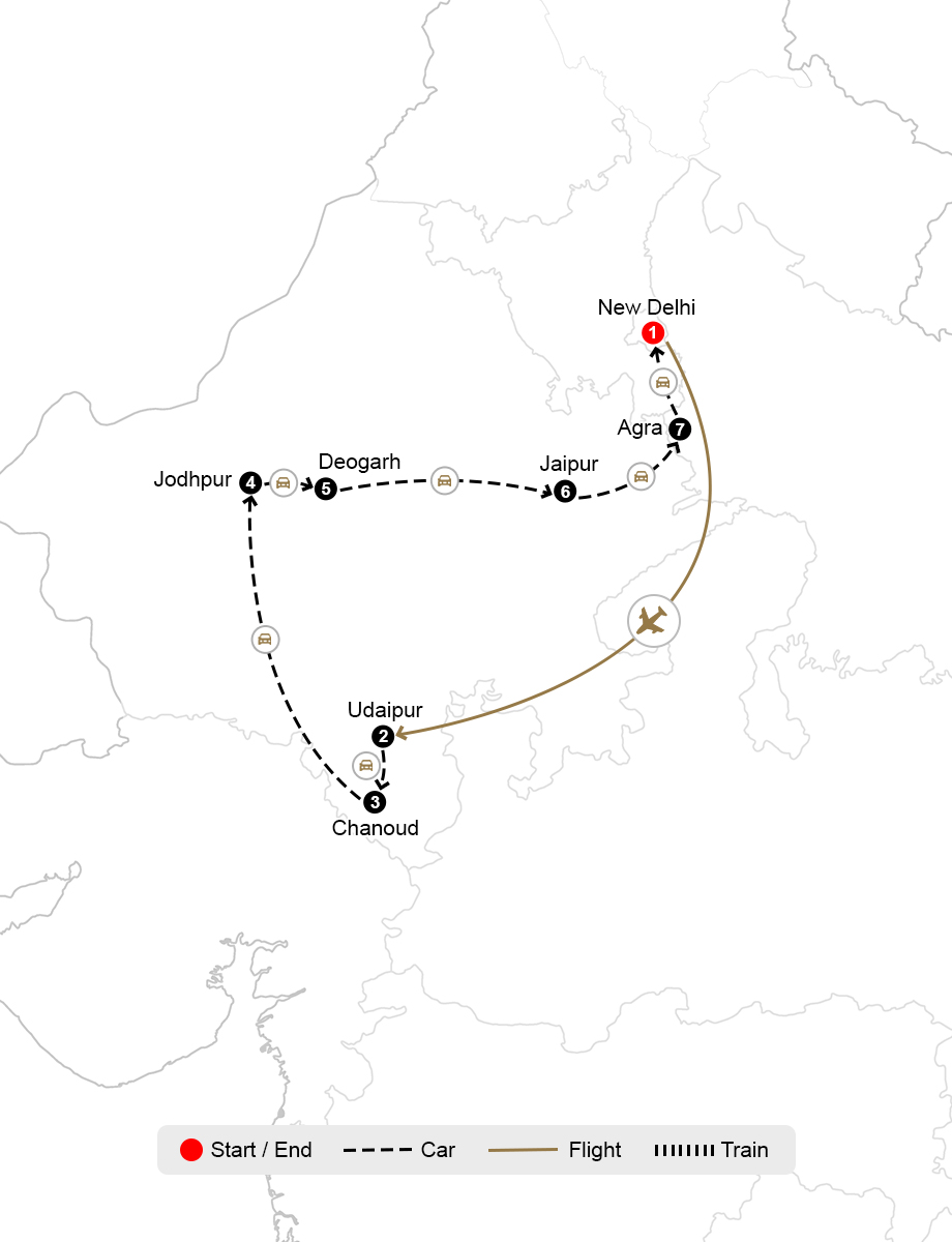 - Destinations Delhi, Udaipur, Chan... Delhi, Udaipur, Chanoud, Jodhpur, Deogarh, Jaipur, Agra