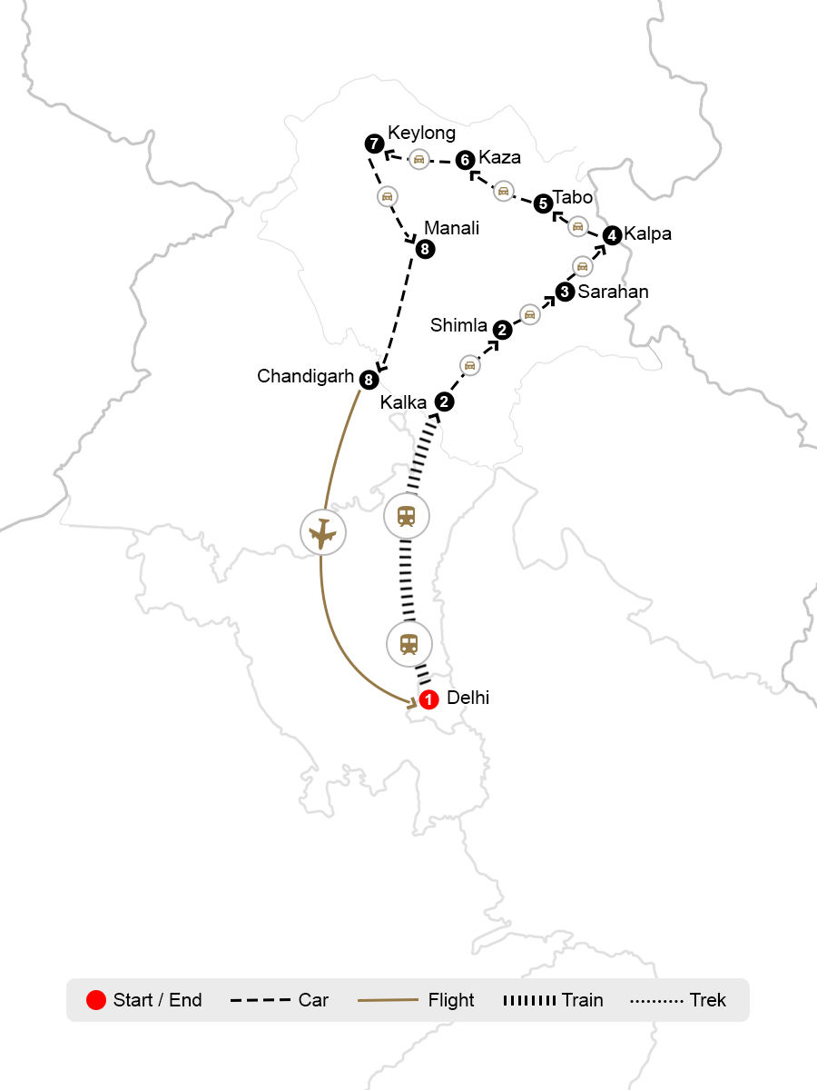 - Destinations Delhi, Shimla, Sarha... Delhi, Shimla, Sarhan, Kalpa, Tabo, Kaza, Keylong, Manali, Chandigarh, Delhi